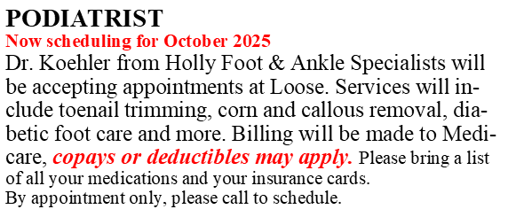 Loose offers a variety of ongoing health services, some are free, some have a fee. For more information, please call Loose at 810 735-9406.